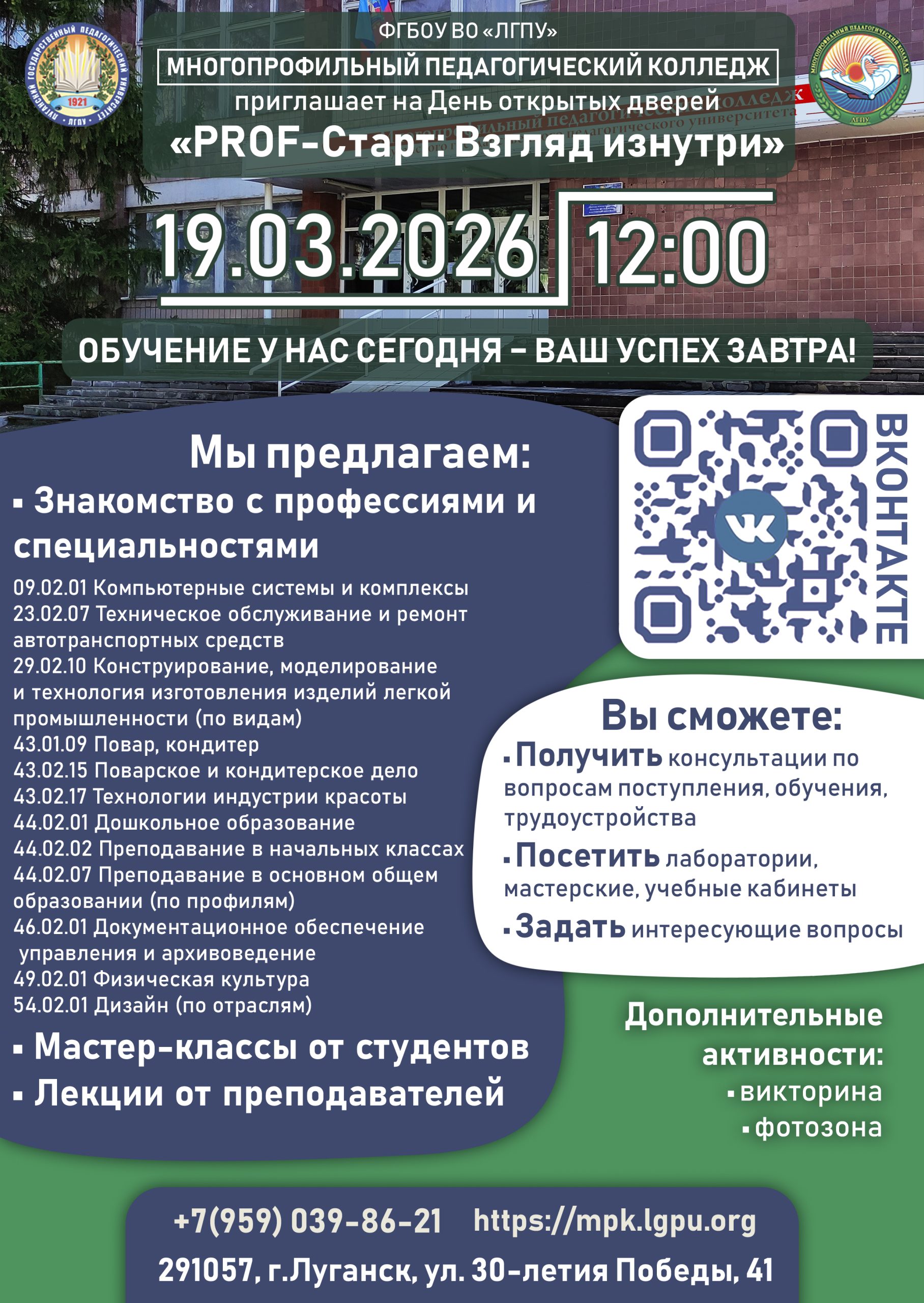 Это ваш шанс увидеть колледж изнутри, разобраться в профессиях и специальностях, и ощутить атмосферу студенчества.