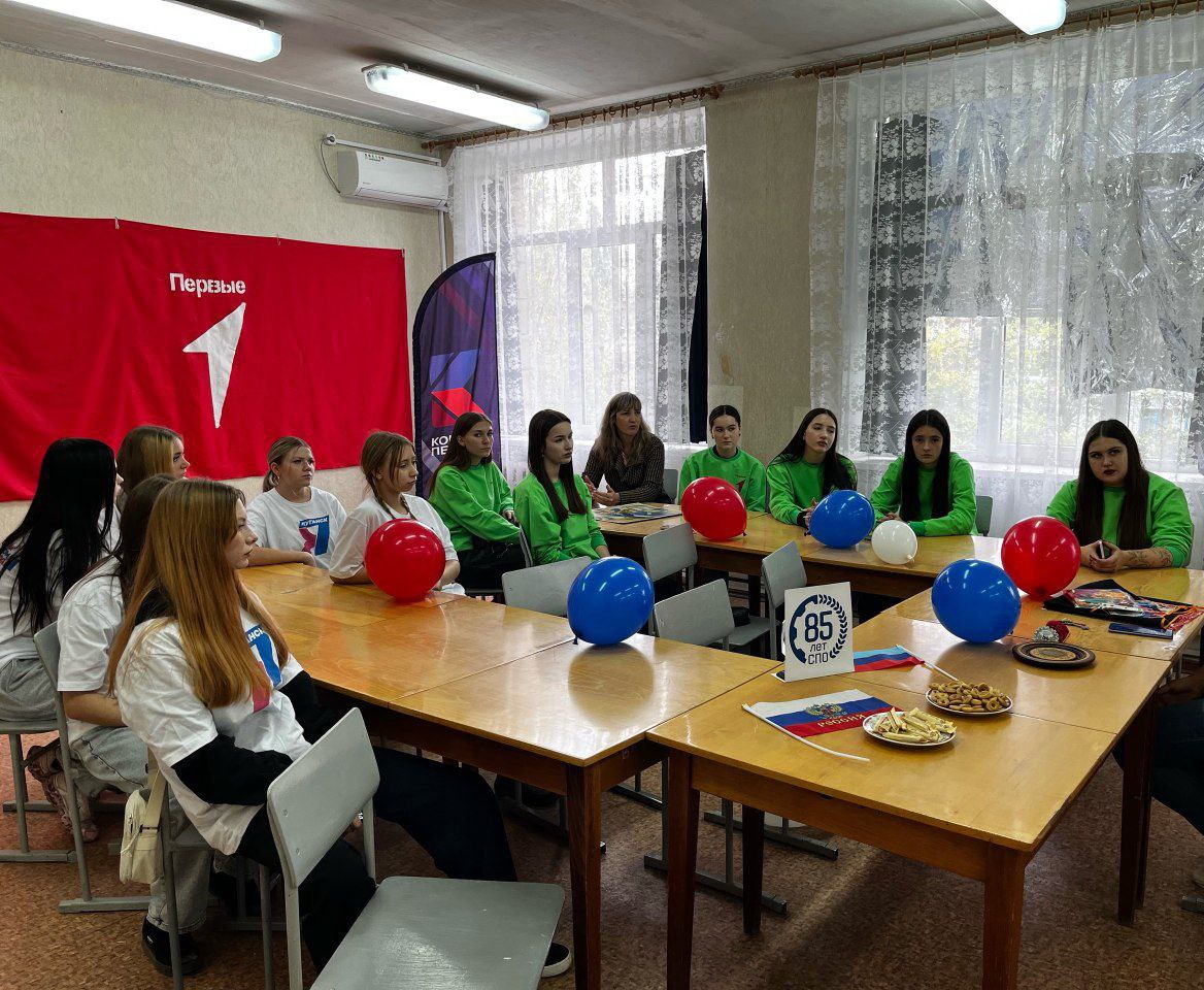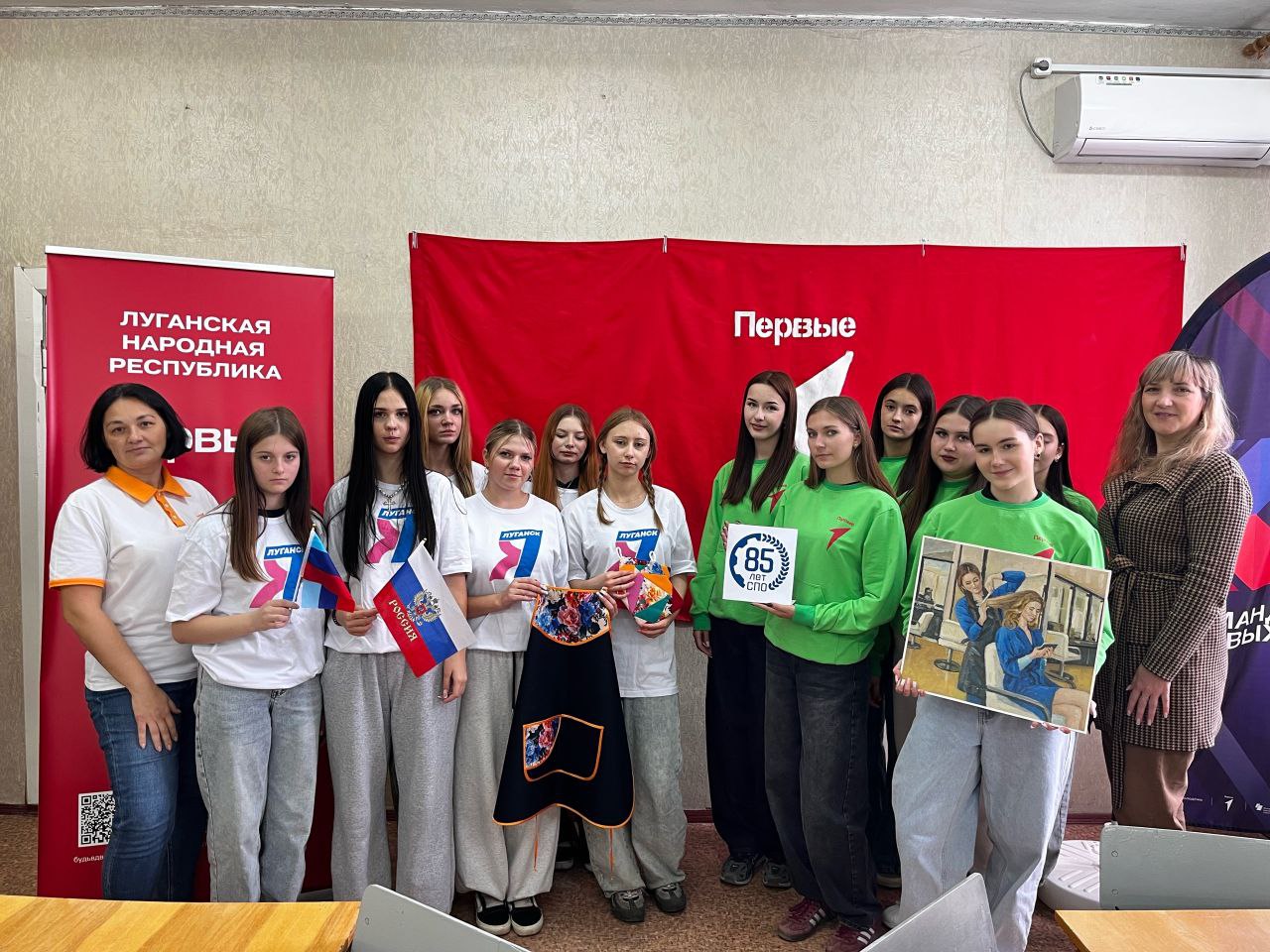 Активисты первичного отделения Многопрофильного педагогического колледжа ЛГПУ общественного движения детей и молодежи «Движение первых» под руководством советника директора по воспитанию и взаимодействию с детскими общественными объединениями Анны Радченко посетили «Луганский колледж моды, парикмахерского искусства и компьютерных технологий» в канун празднования юбилейного Дня среднего профессионального образования «85 лет СПО» в рамках проведения акции «От Первички к Первичке».