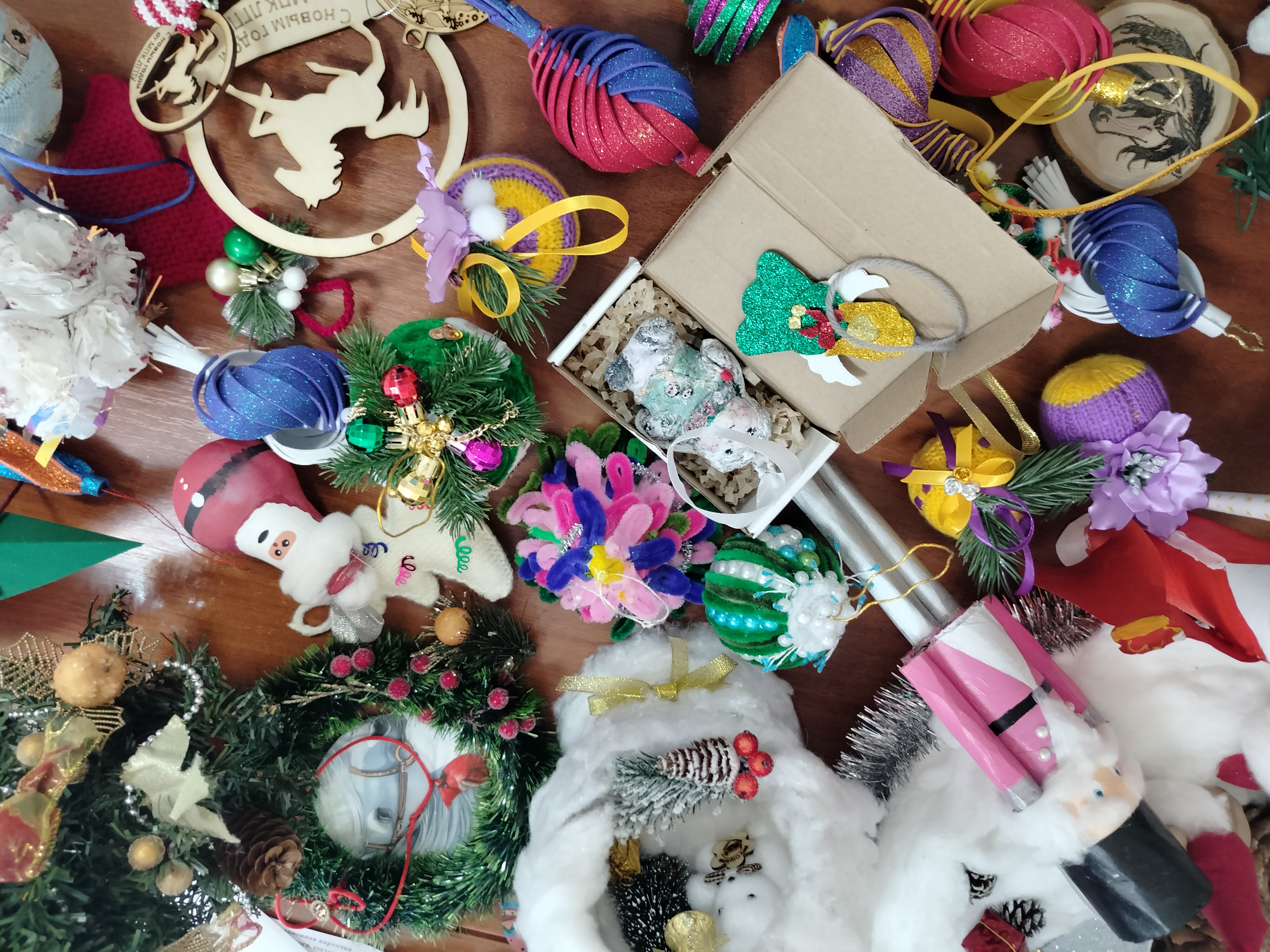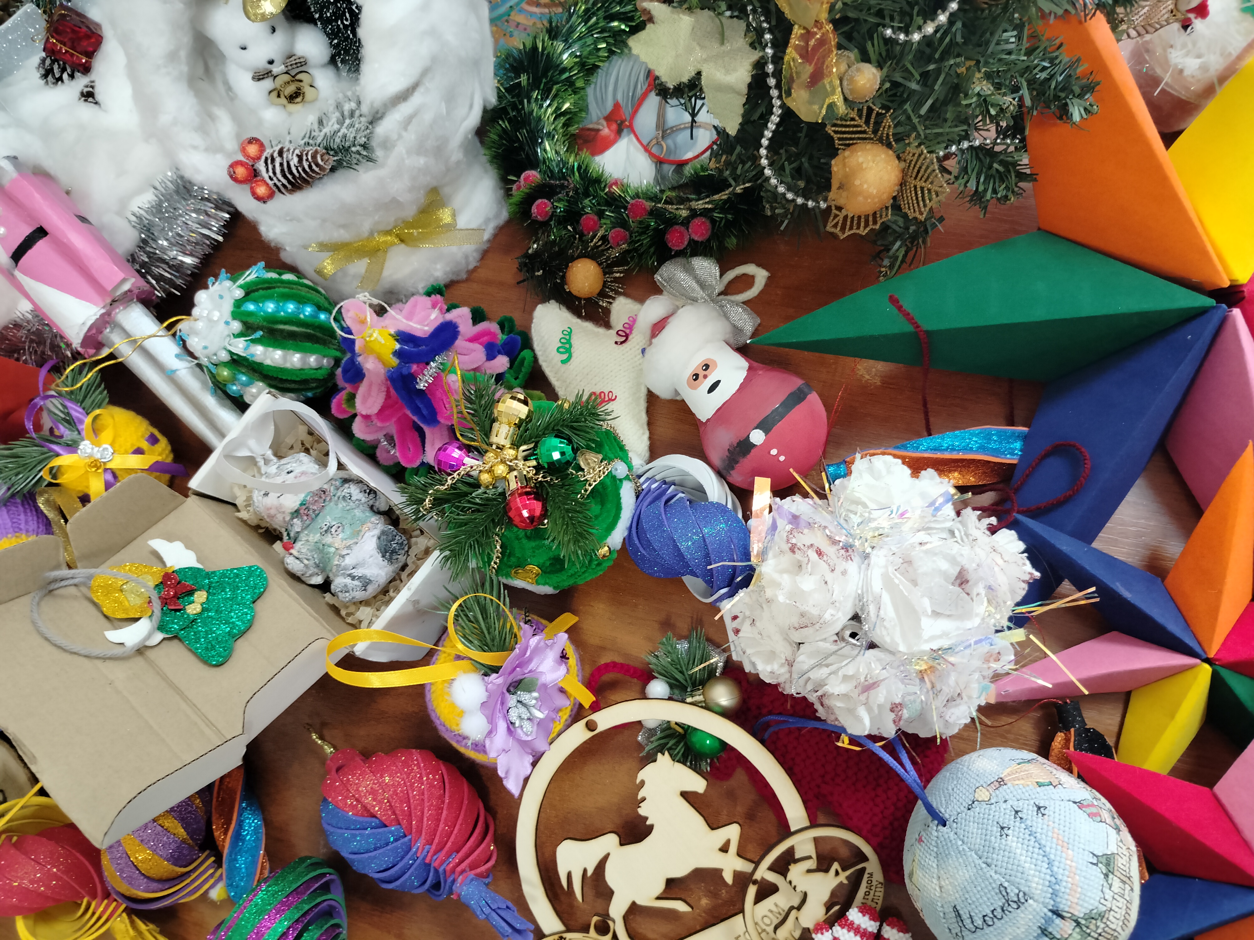 Ребята изготовили яркие и красочные новогодние игрушки своими руками, которые будут проданы на ярмарке, а вырученные деньги пойдут на закупку подарков для участников СВО.