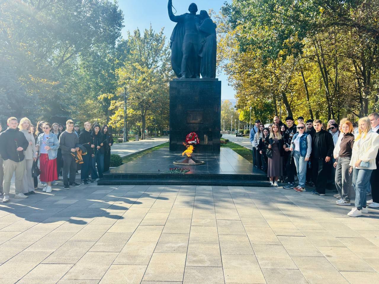 Памятник участникам Великой Отечественной войны и вечный огонь — это трогательное место, где ребята почтили память героев, защищавших нашу Родину. Отдали дань уважения тем, кто отдал свою жизнь за мирное небо над нашей головой.