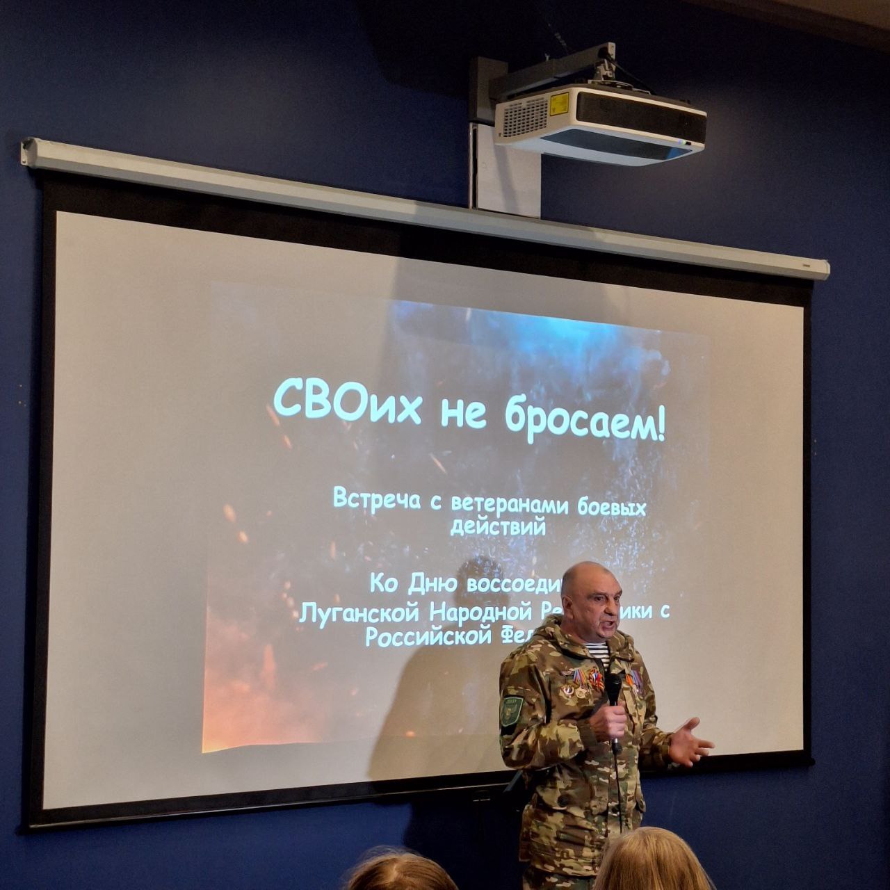 В Луганском краеведческом музее прошла трогательная встреча студентов Многопрофильного педагогического колледжа ЛГПУ с ветеранами боевых действий, приуроченная ко Дню воссоединения Донецкой Народной Республики, Луганской Народной Республики, Запорожской области и Херсонской области с Российской Федерацией.