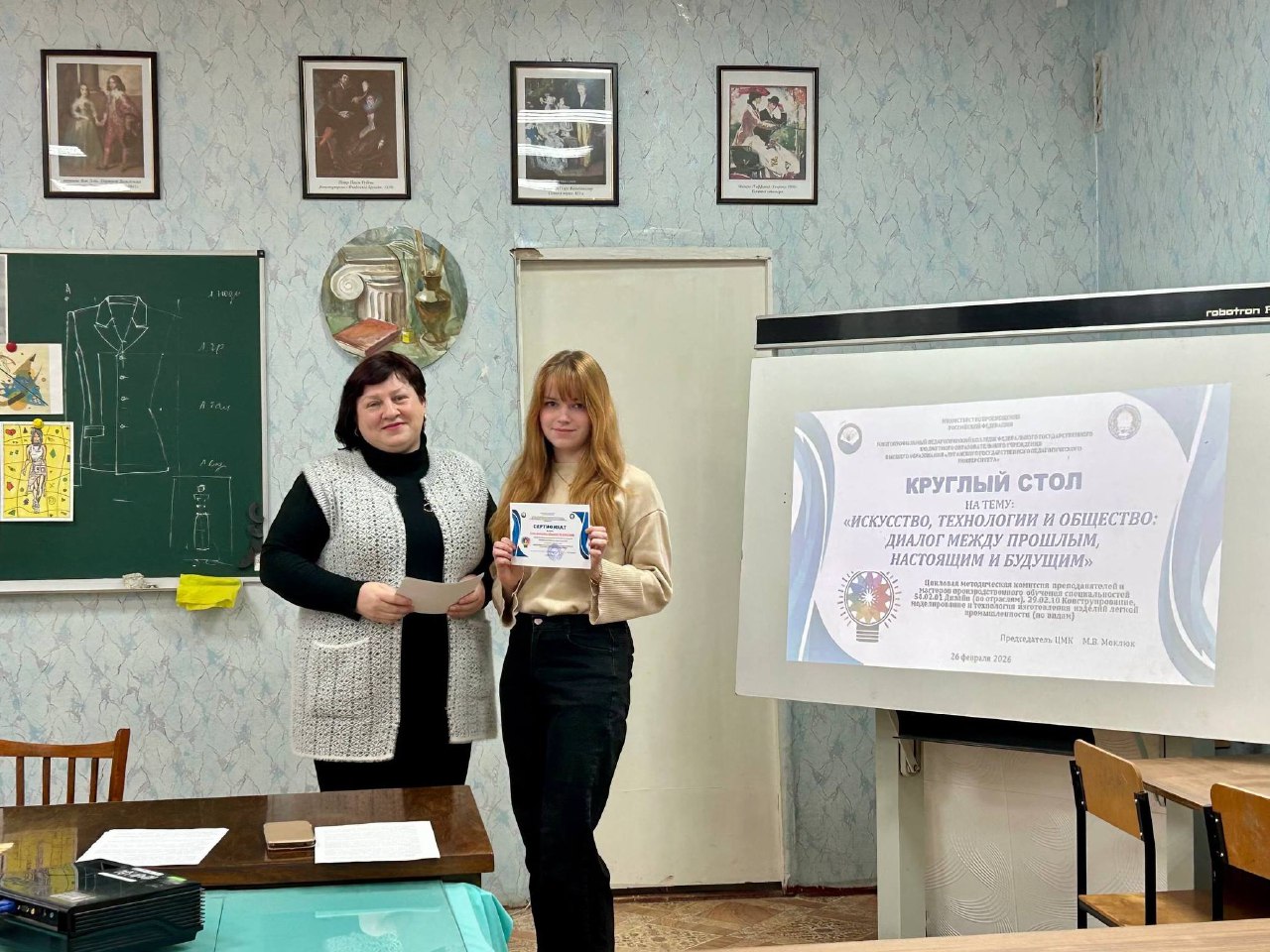 Формат круглого стола создал теплую и познавательную атмосферу, где студенты и преподаватели могли свободно обмениваться идеями. Мы обсуждали безграничные возможности передовых технологий и их применение в рождении новых форм художественного самовыражения. Особое внимание было уделено эстетическому воспитанию будущих профессионалов, развитию творческого мышления и художественного вкуса. Эти встречи играют ключевую роль в формировании личности студентов специальностей Дизайн (по отраслям) и Конструирование, моделирование и технология изготовления изделий легкой промышленности (по видам), давая им ценные навыки для будущего.