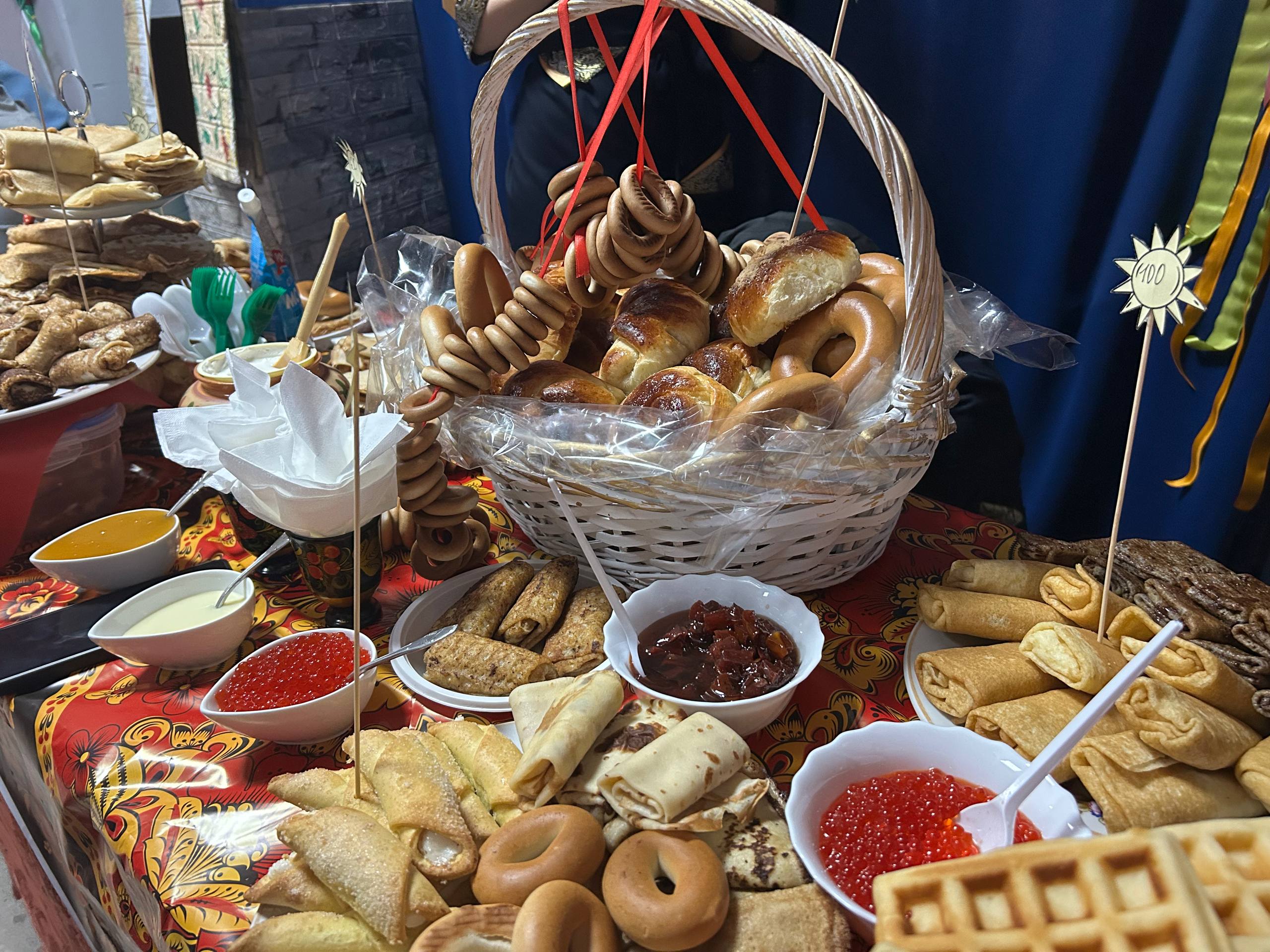 Гости смогли насладиться традиционной ярмаркой студенческого кулинарного творчества. Студенты всех структур подошли к делу креативно: каждый стол был оформлен стильно, а главное блюдо Масленицы — блины на любой вкус! От классических с начинкой до самых смелых экспериментов — выбор был огромным!