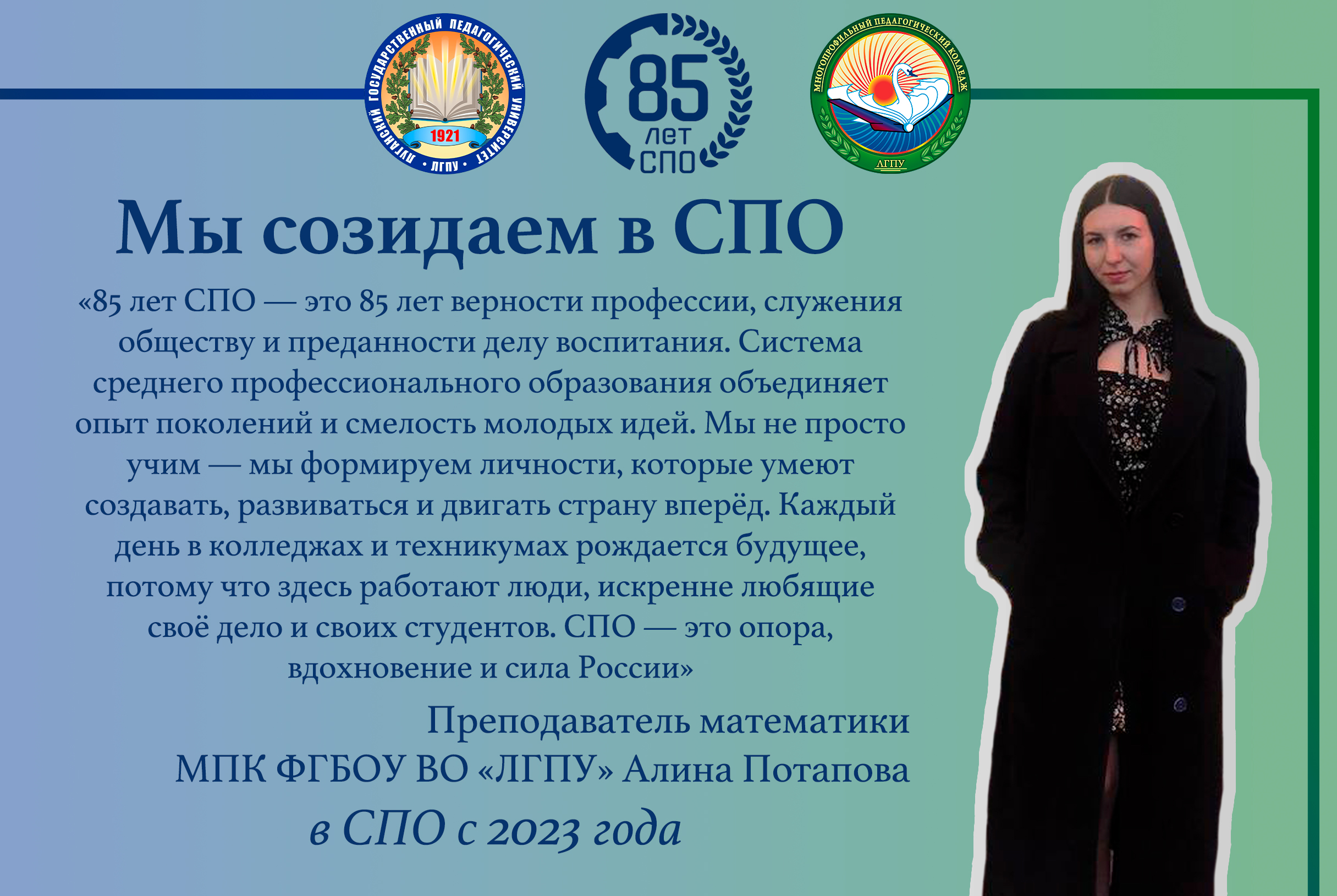 «Мы созидаем в СПО» Алина Потапова