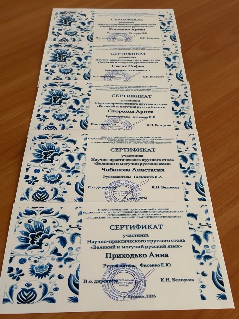 В Многопрофильном педагогическом колледже ФГБОУ ВО «ЛГПУ» под руководством преподавателей филологических дисциплин Яны Гальченко, Ирины Кутковой, Елены Фисенко состоялся научно-практический круглый стол «Великий и могучий русский язык», посвящённый вопросам сохранения, развития и популяризации русского языка среди молодёжи. Мероприятие собрало студентов разных курсов и специальностей, преподавателей, заинтересованных в судьбе родного языка.