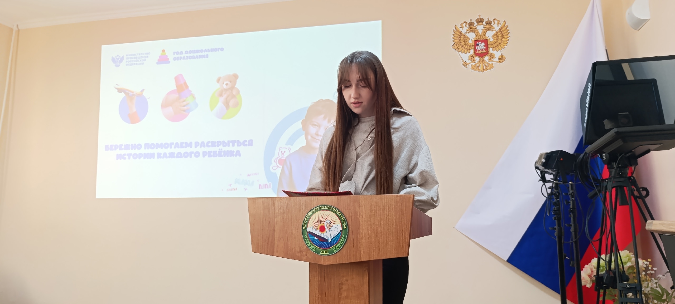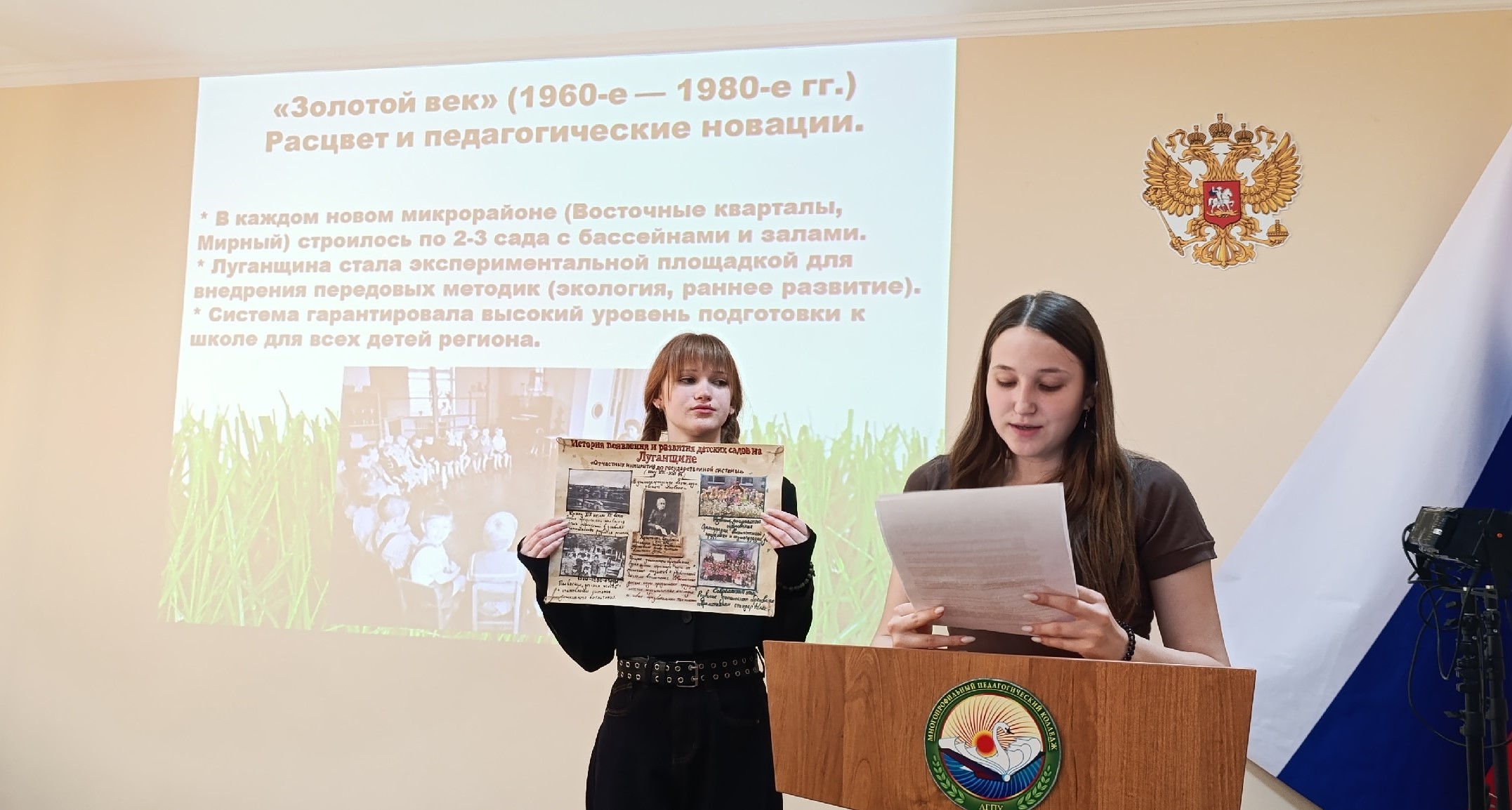 В Многопрофильном педагогическом колледже прошли ежегодные педагогические чтения «Педагог ХХI столетия: от творческого поиска к профессиональному мастерству». Темой мероприятия в этом году стала история и современность детского сада как комфортного пространства для развития детей и взрослых. В Российской Федерации 2026 год объявлен Годом дошкольного образования, и студенты отделения гуманитарно-педагогического образования представили результаты своей проектной деятельности в области исследования традиций и инноваций в системе дошкольного воспитания.