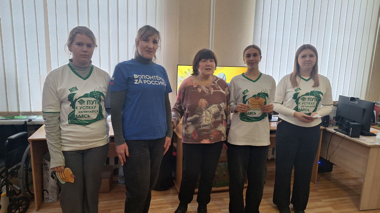 Активисты первичного отделения Общероссийского общественно-государственного движения детей и молодежи «Движение Первых» и волонтерский отряд «Забота» Многопрофильного педагогического колледжа ЛГПУ поздравили участников Луганской республиканской общественной организации Общероссийской общественной организации инвалидов «Всероссийское общество слепых» с Широкой Масленицей.
