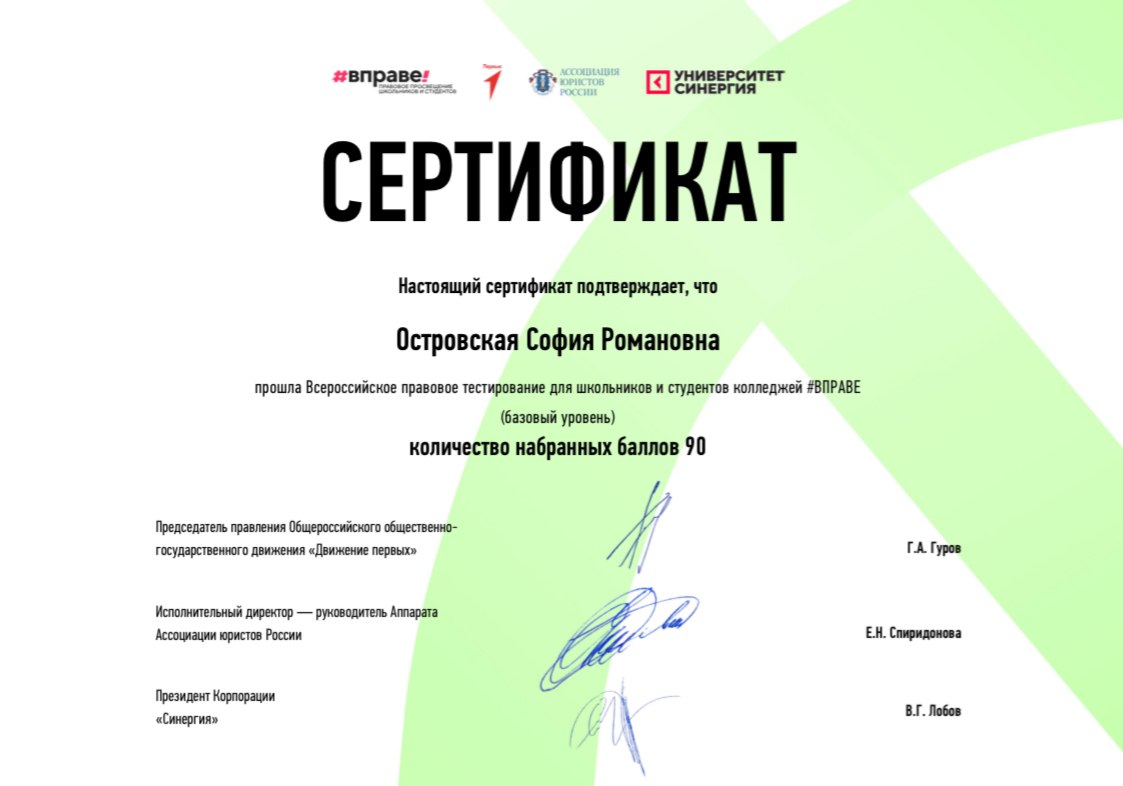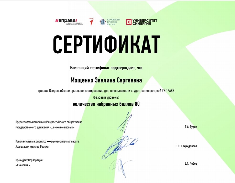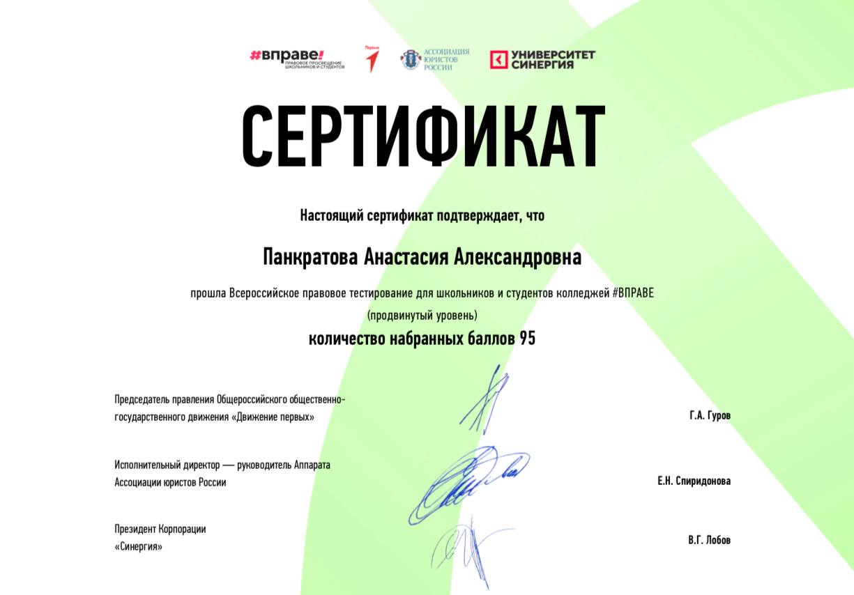 Обучающиеся прошли Всероссийское правовое тестирование для школьников и студентов колледжей по программе базовый и продвинутый уровень, повысив свои знания в рамках правового поля.