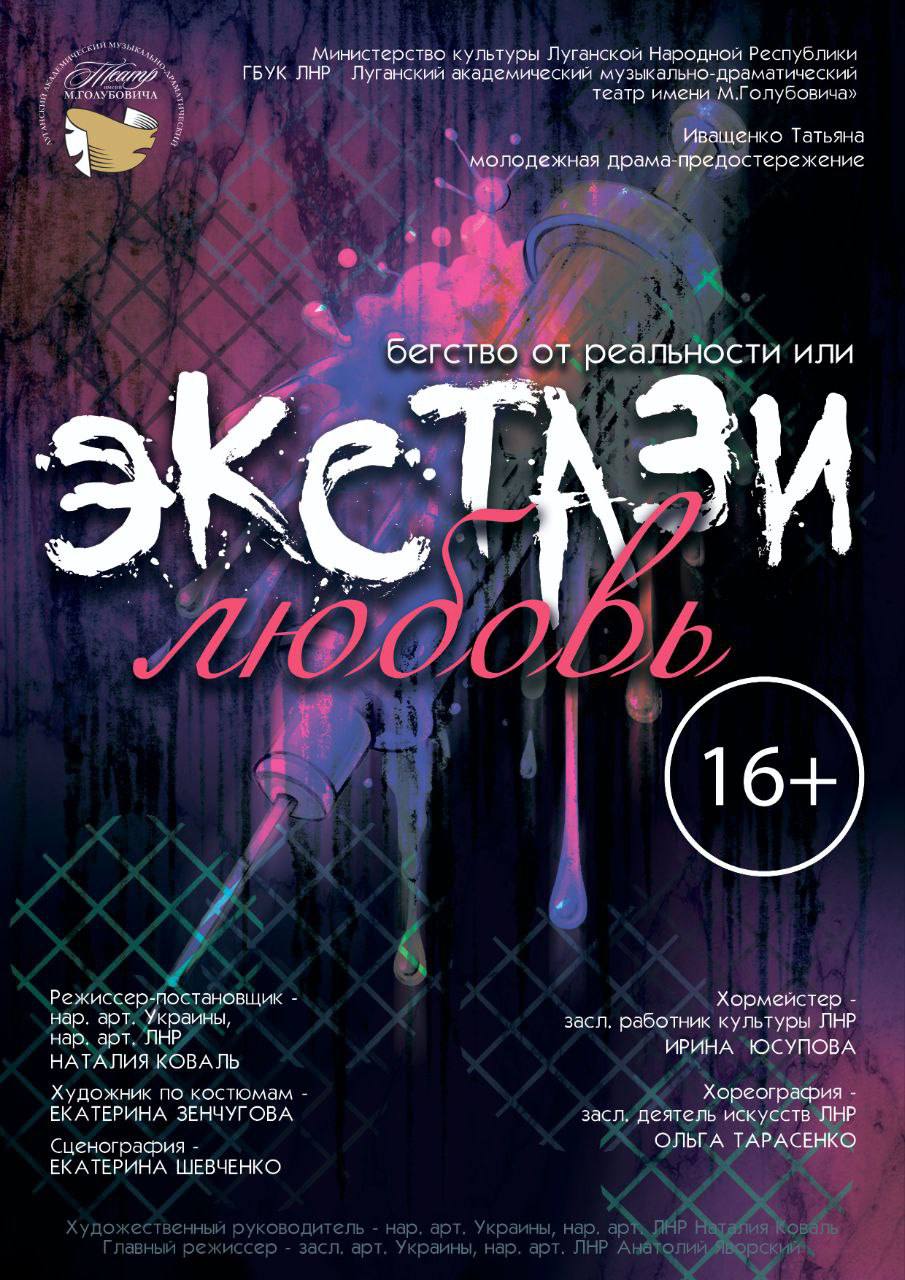 Студенты Многопрофильного педагогического колледжа ЛГПУ 22 октября в сопровождении преподавателя русского языка и литературы Яны Гальченко посетили Луганский театр имени М. Голубовича и посмотрели спектакль «Бегство от реальности или Экстази-любовь» по пьесе Татьяны Иващенко, режиссер-постановщик Наталья Коваль. Это не просто спектакль, это настоящее предостережение, которое заставляет задуматься о страшной беде, которая ломает судьбы и отнимает будущее, особенно когда речь идет о жизни современной молодежи.