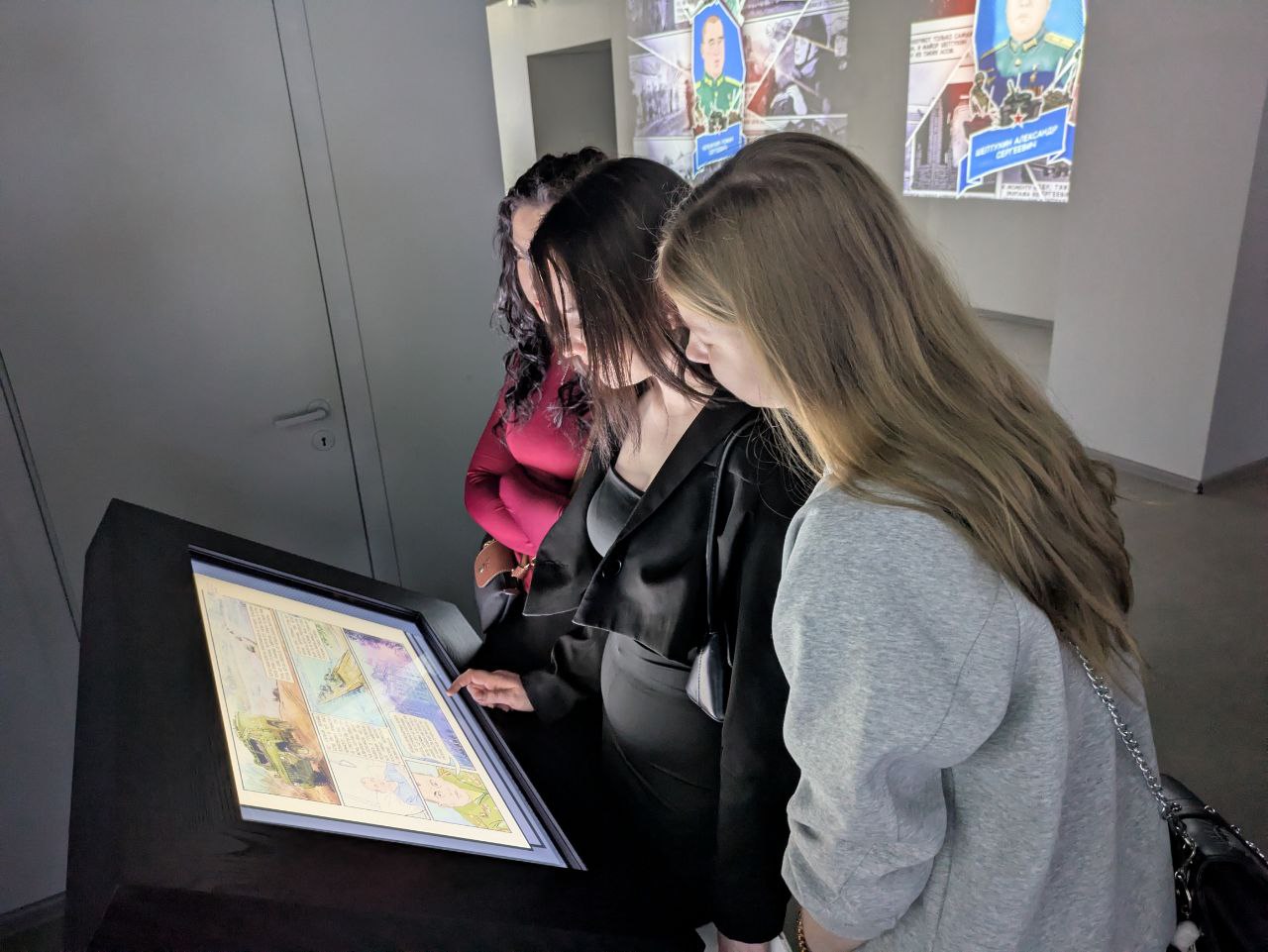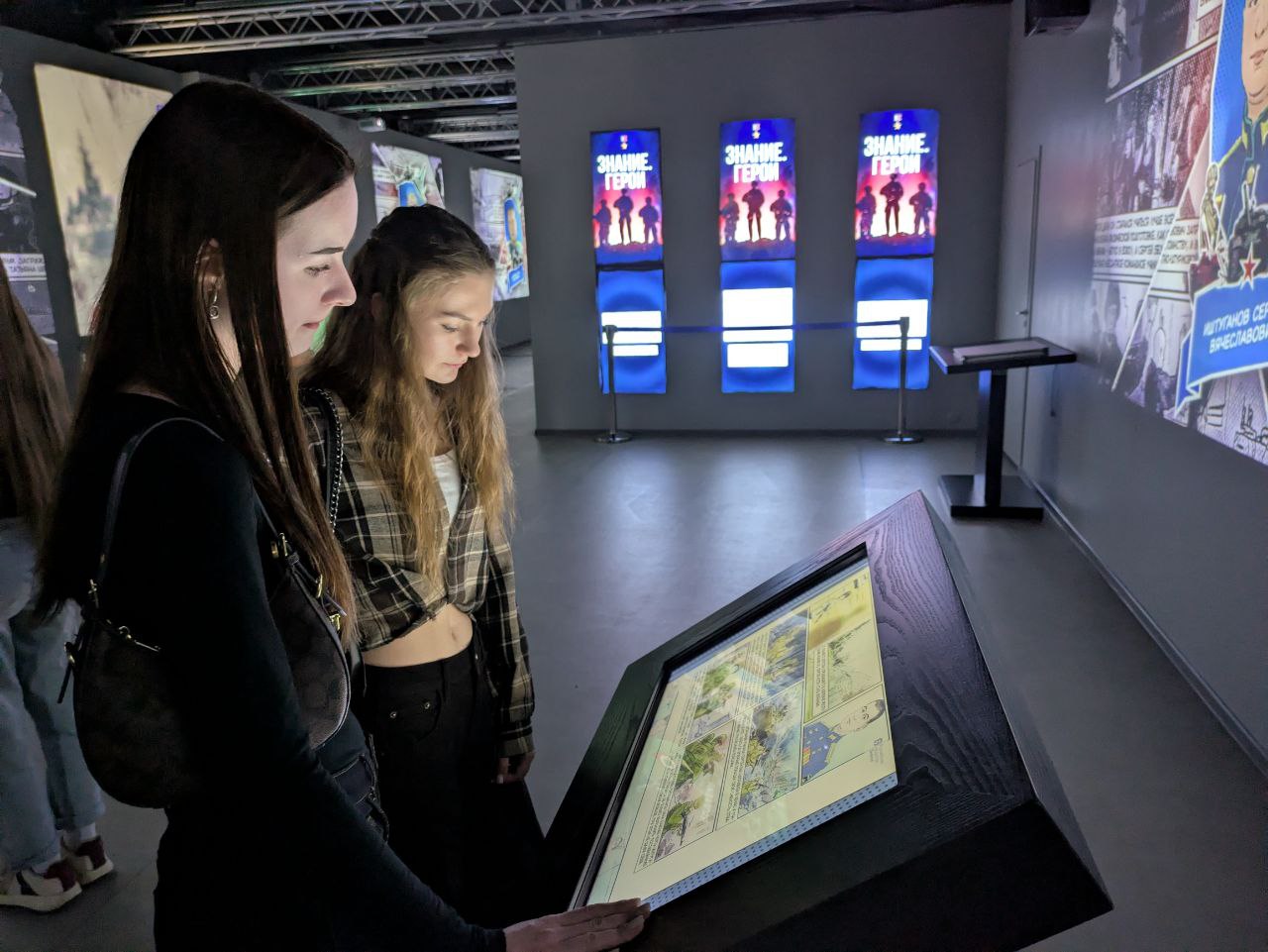Ребятам предстали 33 графические новеллы на огромных сенсорных экранах. Эти яркие, основанные на реальных документах, истории рассказали о подвигах современных Героев России. Каждый образ, каждая линия – это глубокое, эмоциональное раскрытие мужества и самоотверженности.