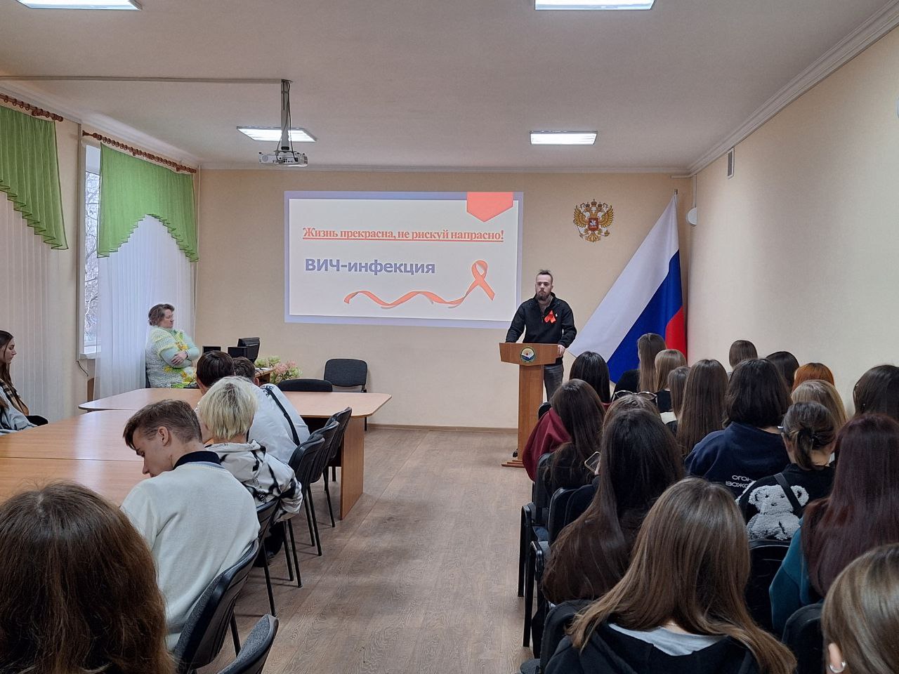 Мероприятие прошло в формате интерактивной лекции с использованием наглядных материалов и обсуждением актуальных вопросов. Студенты активно участвовали в дискуссии и выразили свою обеспокоенность по поводу распространения ВИЧ/СПИДа в обществе.