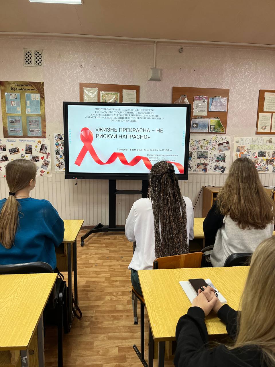 Сегодня, во Всемирный день борьбы со СПИДом, в Многопрофильном педагогическом колледже ЛГПУ состоялось открытое воспитательное мероприятие «Цена одной ошибки – жизнь!», организованное преподавателями Ольгой Прийменко, Анастасией Ардашниковой и Натальей Крыловой.